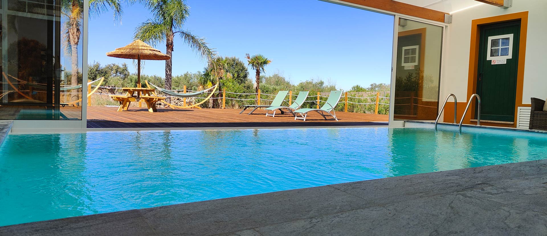 O Turismo Rural “Quinta de Azeméis” situa-se no Coração do Alentejo, entre Arraiolos, Estremoz, Évoramonte e a cidade de Évora. O Grande Lago do Alqueva encontra-se a apenas 45 minutos do nosso Turismo em Espaço Rural. A Quinta dispõe de uma moradia de Tipologia T2 com 140 m2, com 2 quartos com wc privativo, wc de serviço, sala e cozinha. Dispomos de uma piscina interior de água salgada e borda infinita, coberta e aquecida, a temperatura da água permanece a 30 graus todo o ano, o acesso á piscina é feito diretamente da sala de estar. No exterior pode usufruir de um deck com 250 m2 com mesas e mobiliário de apoio, espreguiçadeiras e uma churrasqueira.
